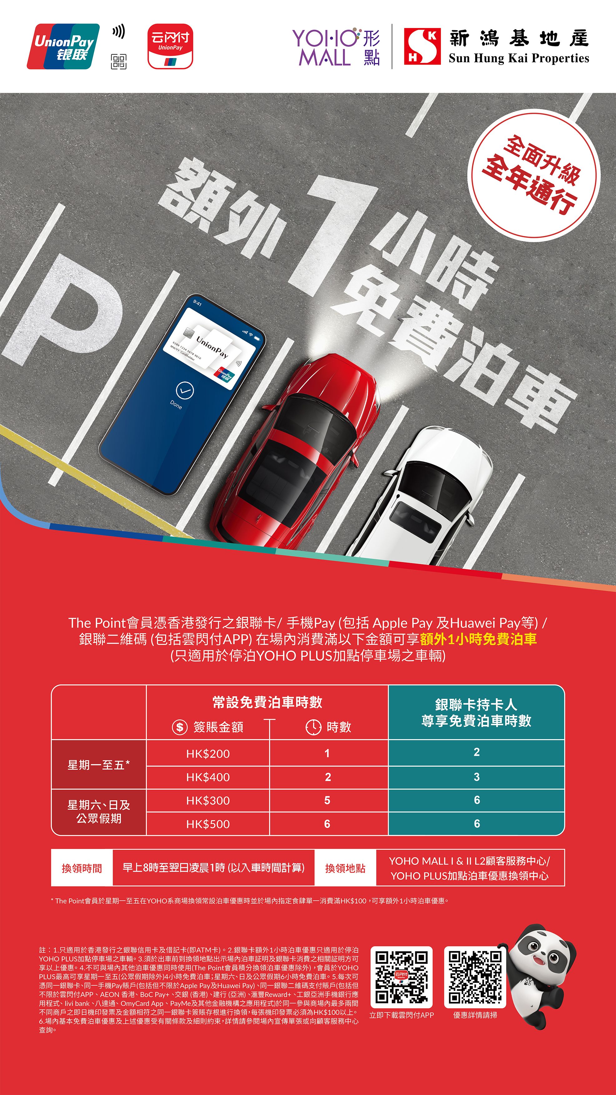 UnionPay Card extra 1 hr free parking privilege